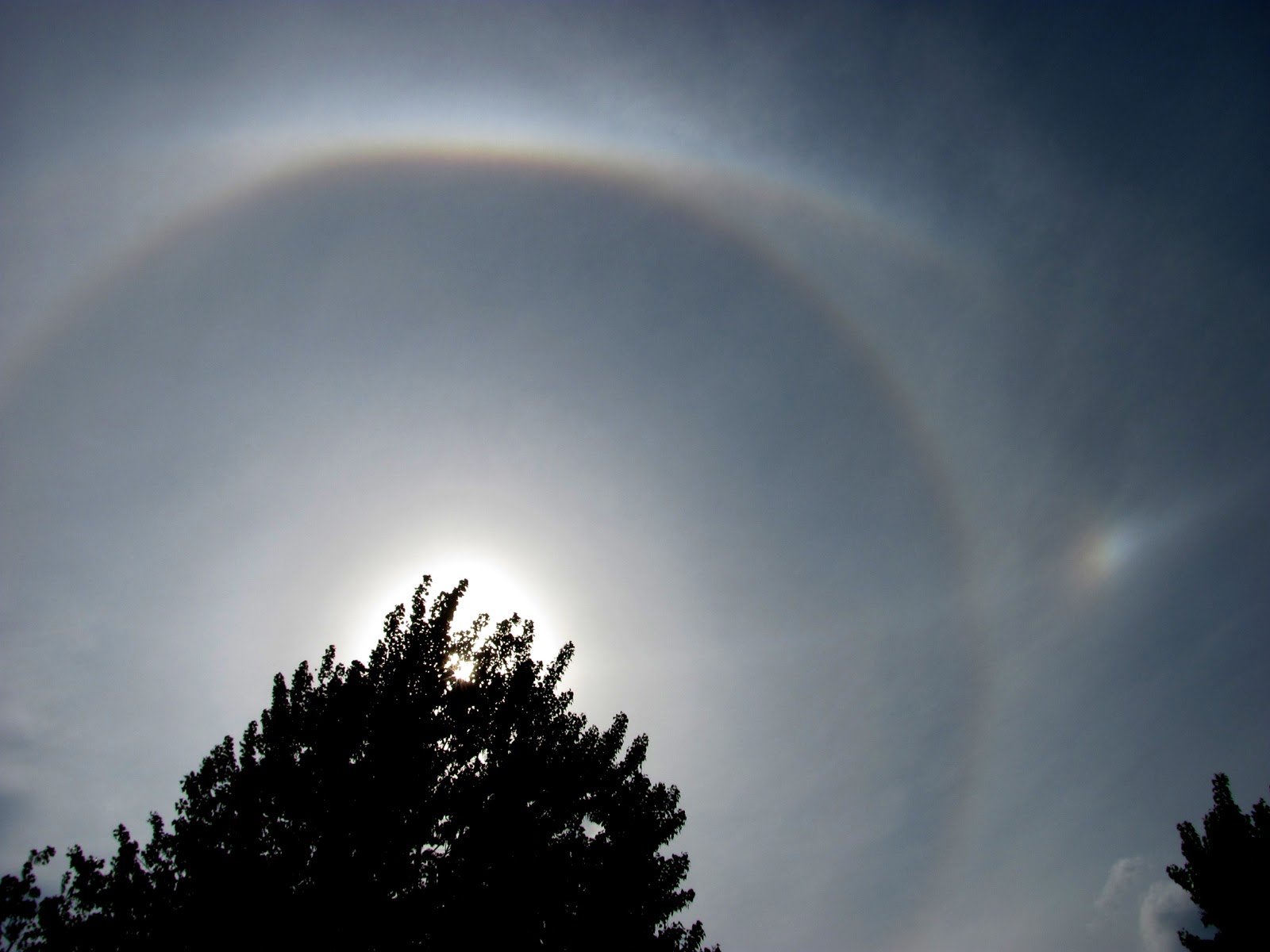 Na ovoj fotografiji se mogu videti još dva tipa haloa. Jedan je Parhelični krug (Parhelic circle), to je horizontalni luk koji ide od Sunca i prolazi kroz Sunčevog psa. On je najčešće neobojen, tj. bele je boje jer tu kristali leda reflektuju svetlosne zrake (za razliku od obojenih koji ih refraktuju u spektar boja)...
